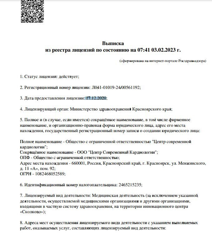 Диапазоны цен на приём врачей и специалистов, услуги и диагностику в центре Современной Кардиологии на Менжинского в Красноярске.